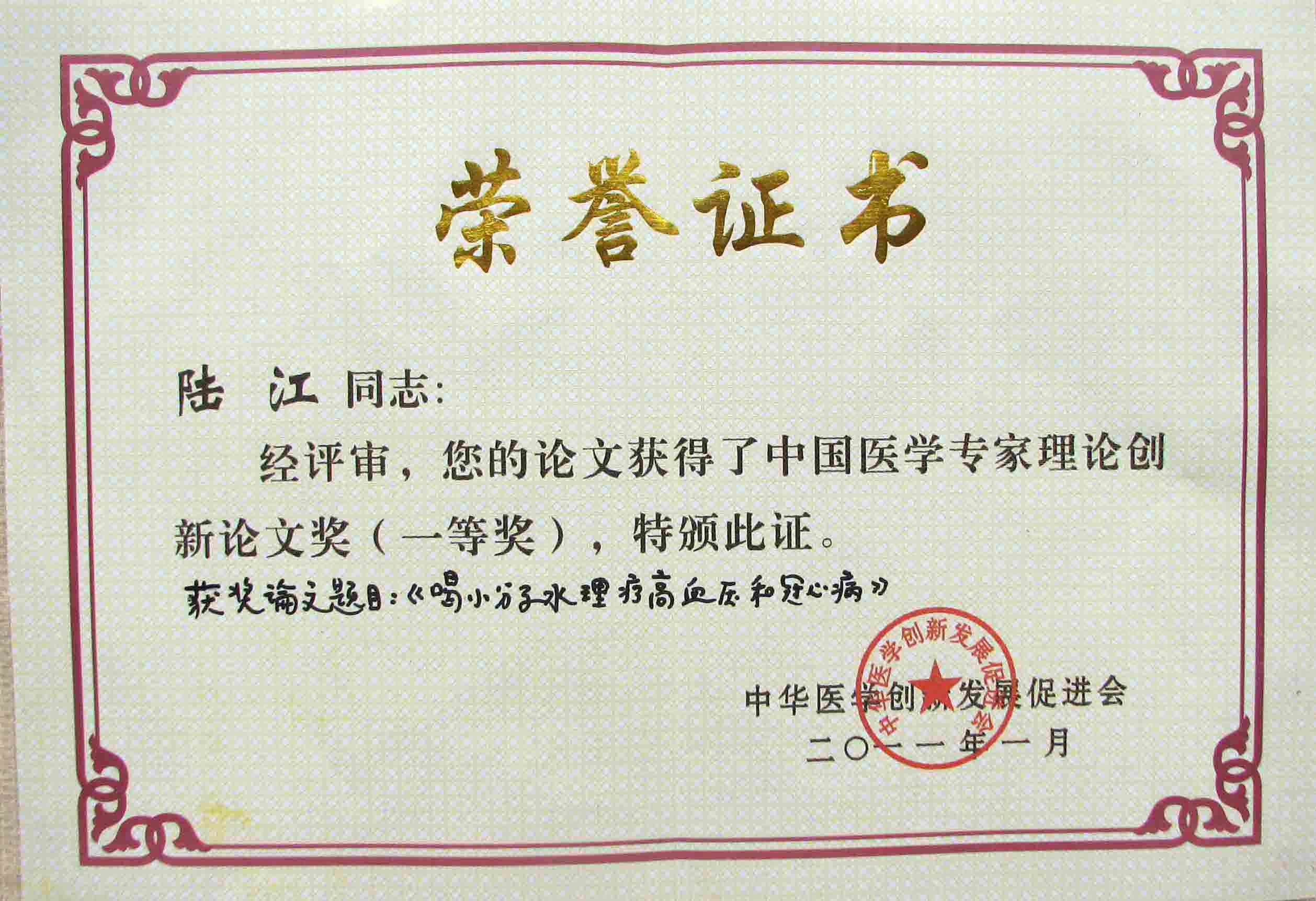 人類幾千年來患以上病癥需終生服藥,幾十年也不能治愈。可是我國南寧的高級(jí)工程師陸 江,于1990年想根治高血壓,研究發(fā)明了離子水瓶,處理出微小分子團(tuán)水供飲用,經(jīng)過醫(yī)院臨床試用和專家鑒定,1999年獲中國發(fā)明專利權(quán),產(chǎn)品于2000年投放市場后一直跟蹤調(diào)查,據(jù)全國各地用戶反饋:祛除了高低血壓、糖尿病和冠心病,并使前列腺增生、咽喉炎、鼻竇炎、慢性氣管炎、支氣管炎、矽肺病、哮喘、慢性胃炎、腸炎、慢性膽囊炎、慢性腎炎、腎衰、膀胱炎、便秘、痔瘡、風(fēng)濕性關(guān)節(jié)炎和濕疹皮炎及中風(fēng)后遺癥等病癥不藥而愈。為什么喝微小水能治20多種病?陸 江從1991年德國科學(xué)家發(fā)現(xiàn)細(xì)胞膜水通道僅為2納米獲得啟發(fā),認(rèn)為多種器官患病是因細(xì)胞脫水,不能正常代謝和分裂增殖,才使器官細(xì)胞減少致衰弱萎縮而形成細(xì)胞缺水性病癥。22年來的實(shí)踐有力地支持了“細(xì)胞脫水致病”這一重要論點(diǎn),表明喝微小水可滿足細(xì)胞的生理需求,補(bǔ)水就能祛病,是生命科學(xué)新亮點(diǎn)。